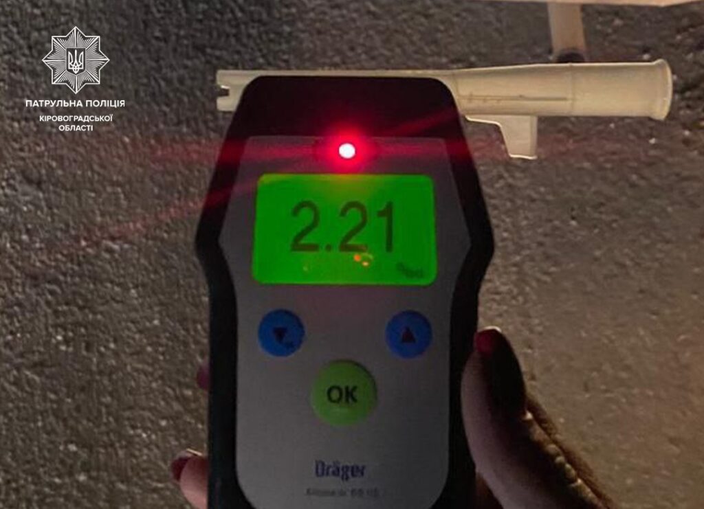 Результат Драгера — 2,21 проміле, що в 11 разів більше допустимої норми.