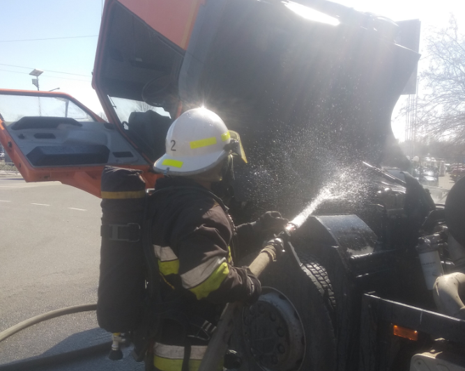 Пiсля прибуття пожежно-рятувального пiдроздiлу до мiсця виклику було встановлено, що горять електричнi дроти та патрубок системи охолодження автомобiля МАЗ N33. Загиблих та травмованих немає.