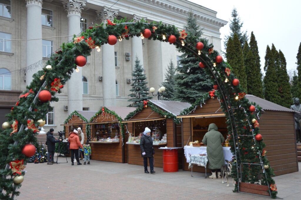 Тут встановлено 8 дерев’яних будиночкiв, де вiдвiдувачi можуть знайти цiкавi новорiчнi товари та Рiздвянi смаколики.