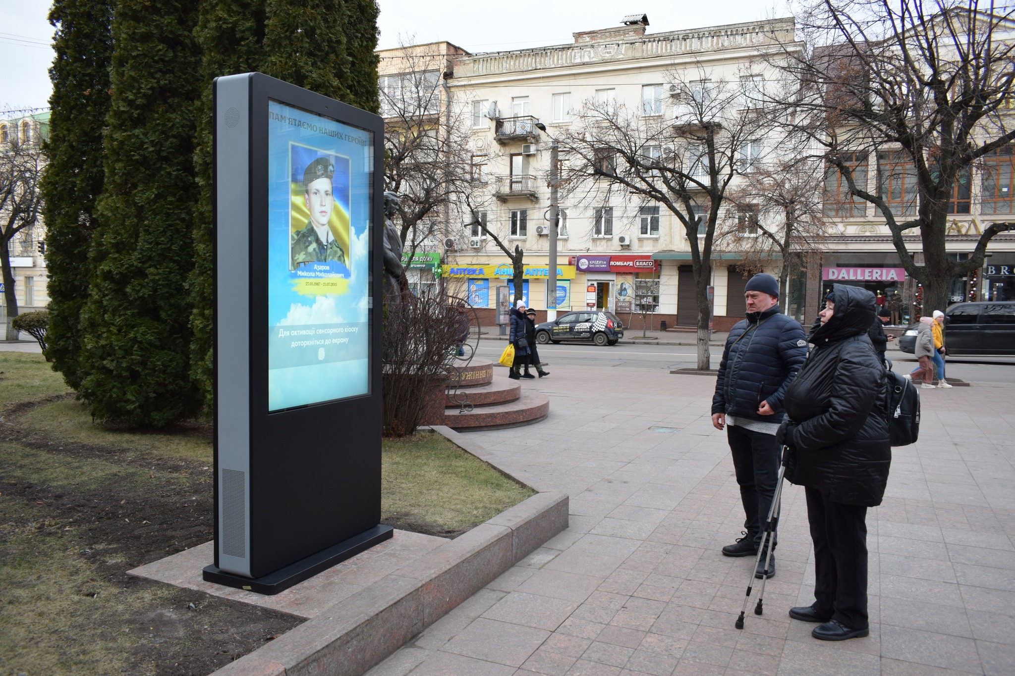 Поки війна триває, інформацію на лед-екрані можна поповнювати оперативно після узгодження з родинами загиблих Героїв.