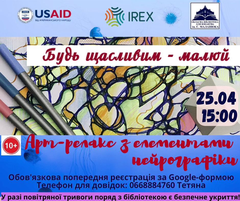 Кропивничан запрошують на арт-релакс з елементами нейрографiки “Будь щасливим – малюй!”