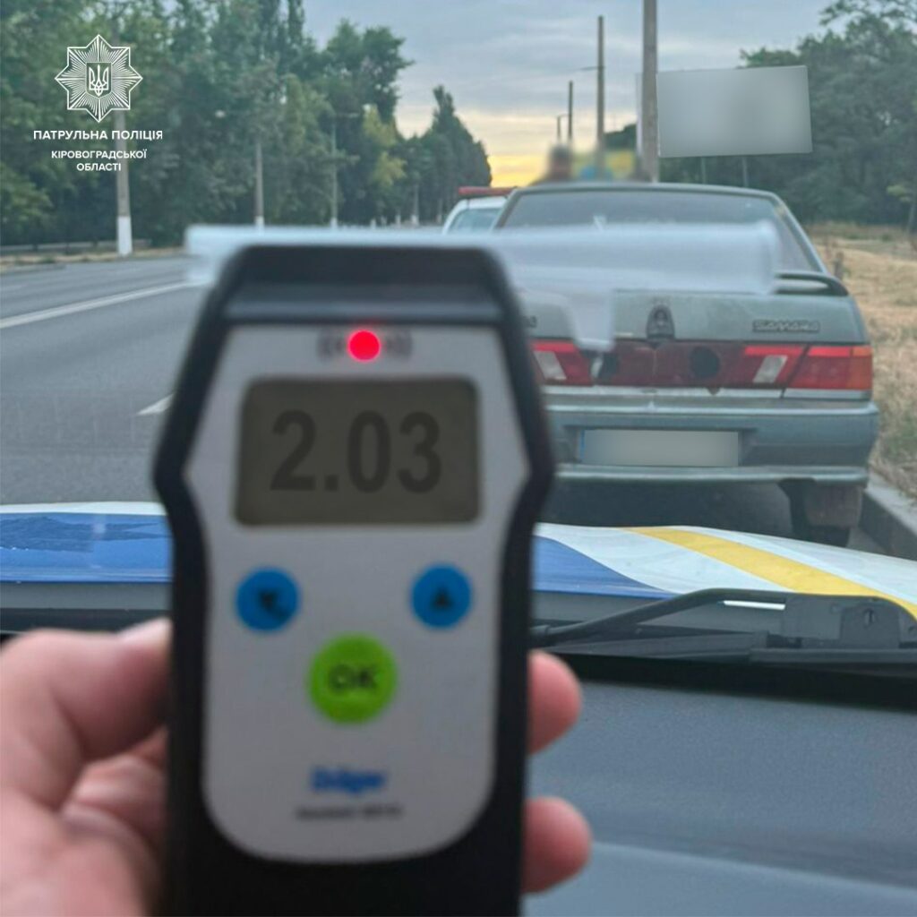 Поліцейські швидко розшукали вказаний транспортний засіб. Під час встановлення обставин події інспектори виявили у керманича ознаки сп’яніння. Чоловік не заперечував, що вживав алкогольні напої та погодився пройти огляд за допомогою алкотестера Драгера. Прилад показав 2,03 проміле, що у понад 10 разів перевищило допустиму норму.