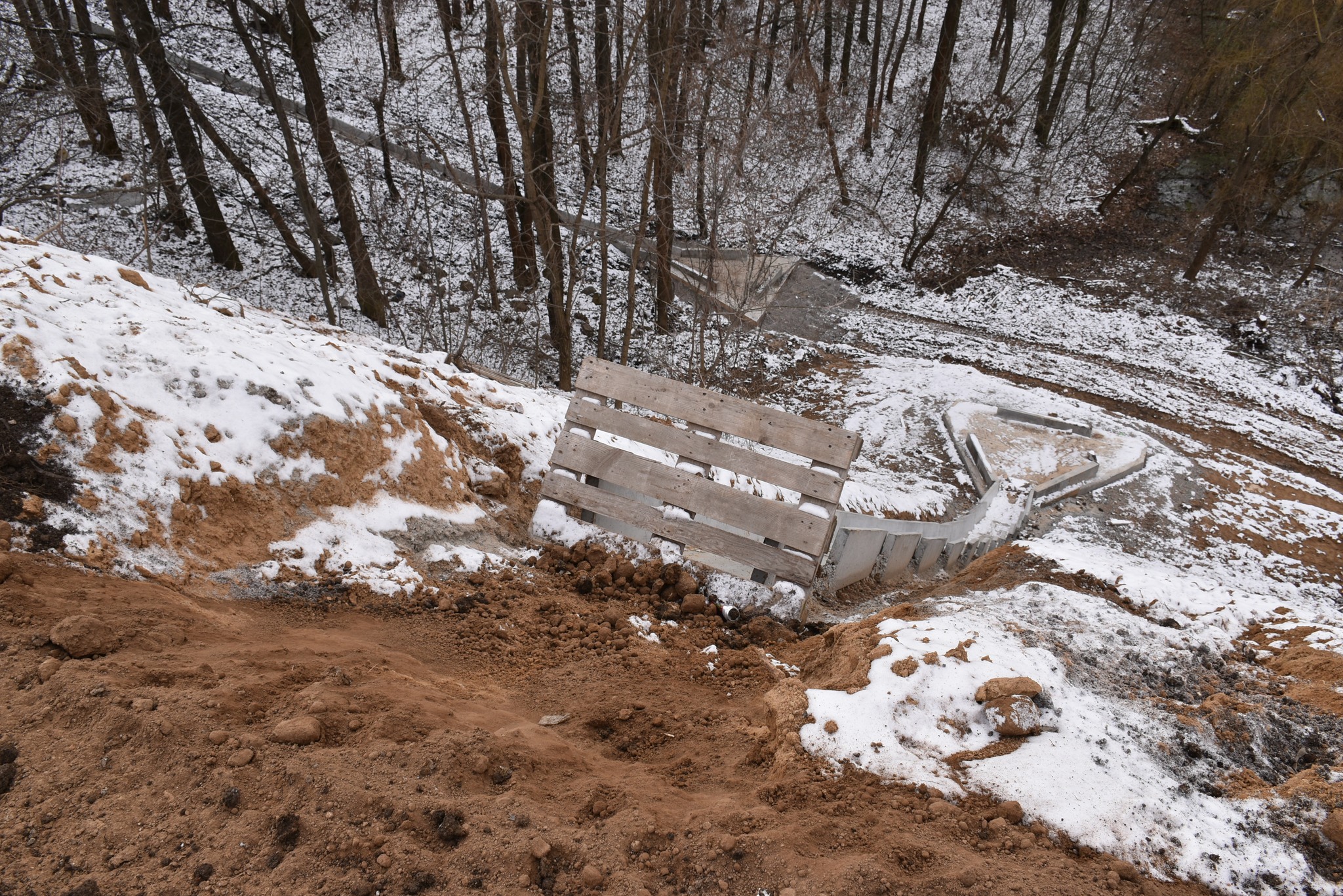 “Ця споруда перебувала в критичному станi через постiйнi зсуви ґрунту, що призводило до просiдання та деформацiї дорожнього полотна i пiшохiдної дорiжки, витокiв стiчних вод з каналiзацiйного колектору, який прокладений через дамбу. Крiм того, через аварiйний стан цiєї дiлянки дороги роками не вирiшувалось питання покращення руху громадського комунального транспорту через мiкрорайони Бєляєва та Нову Балашiвку”.