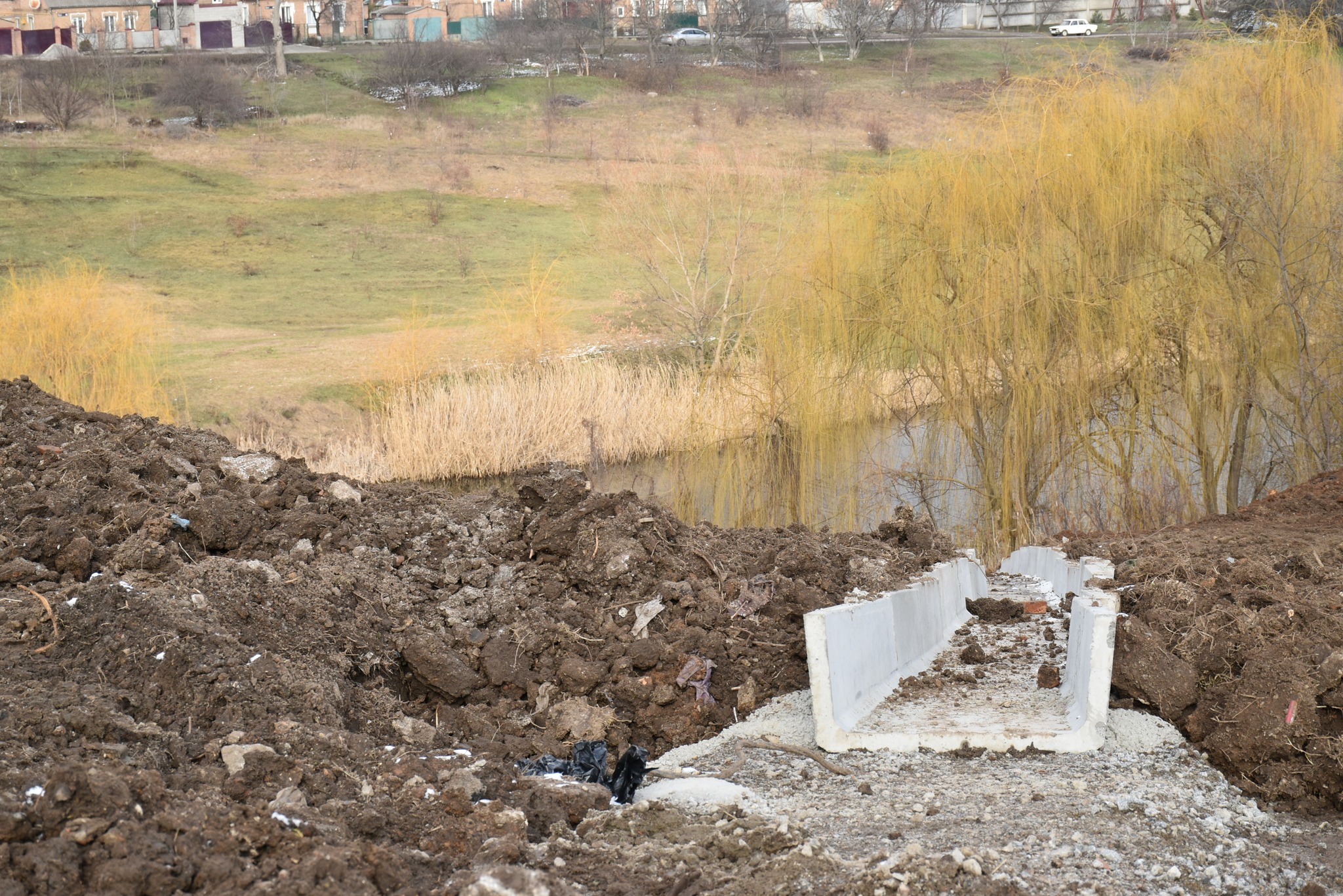 Проєктом передбачено повне вiдновлення дамби, створення надiйної системи вiдведення дощових вод, нової пiшохiдної дорiжки та вiдбiйникiв.