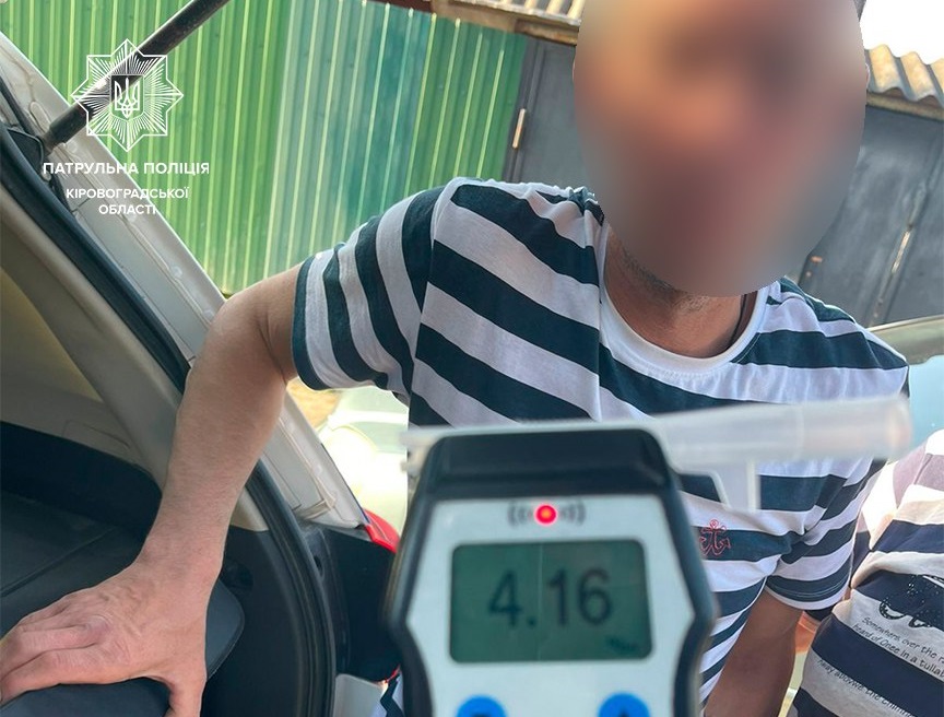 Кропивничанин погодився пройти огляд за допомогою приладу Драгер на місці події. Алкотестер показав 4,19 проміле, що майже в 21 раз перевищило допустиму норму.