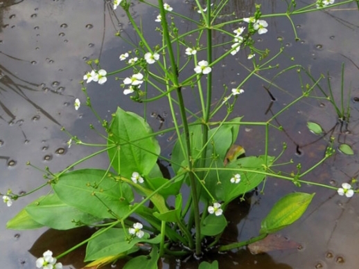 Для неї характерна гетерофілія, тобто різнолистковість, підводна форма цих рослин має лінійне листя. Квітконоси виходять з центра листових розеток і піднімаються у висоту на 90 см. Квітки білі, маленькі, плоди дрібні після дозрівання залишаються зеленого кольору, які з часом розпадаються і плавають по воді. Завдяки цьому рослина добре розмножується.