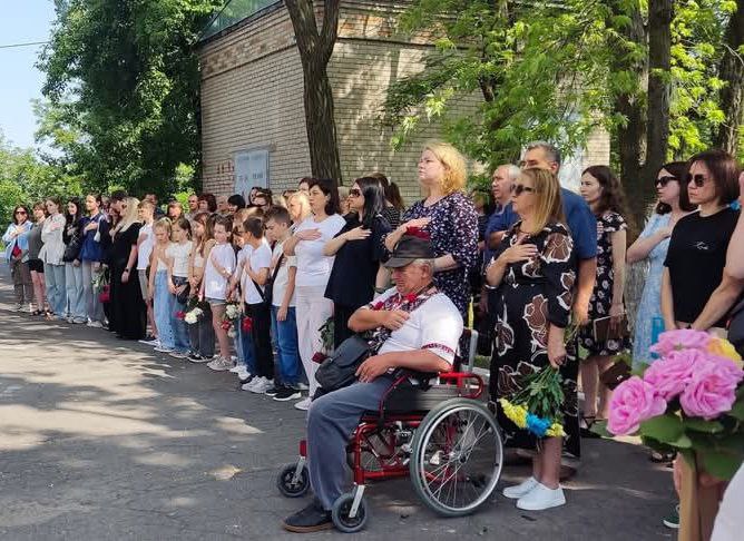 До лiцею прийшли рiднi загиблих, щоб вшанувати пам’ять своїх синiв, братiв, чоловiкiв — тих, хто вiддав життя за незалежнiсть i свободу України.