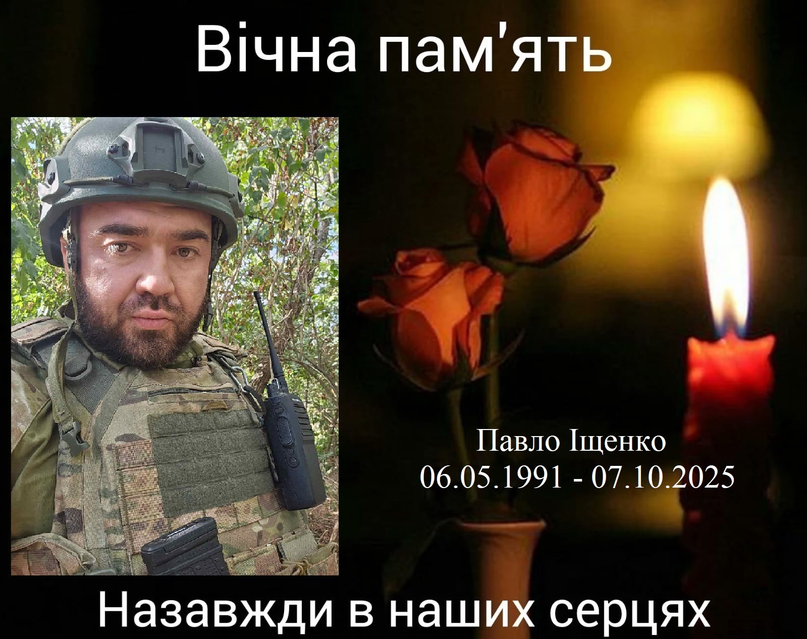 Солдат Павло Іщенко, 1991 року народження загинув смертю хоробрих 07 жовтня 2025 року, тримаючи оборону населеного пункту Бересток Донецької області.