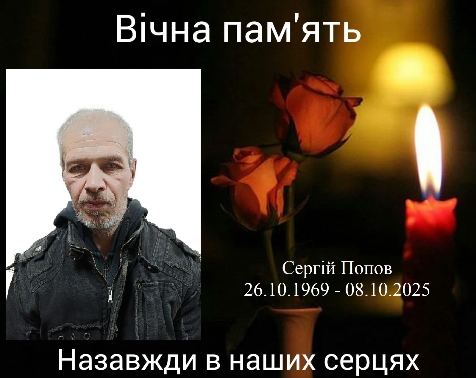 Солдат Сергій Попов, 1969 року народження, помер 08 жовтня 2025 року під час виконання обов’язків військової служби поблизу населеного пункту Миропілля Сумської області.