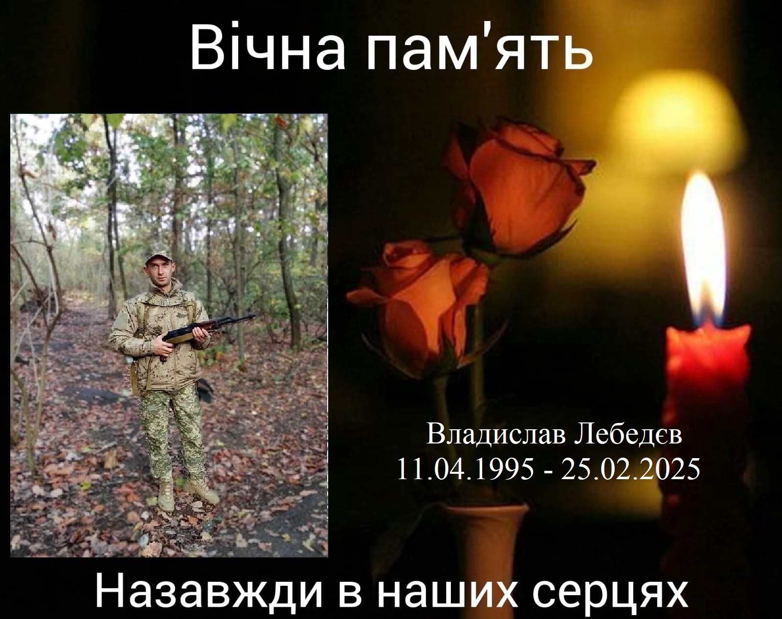 Солдат, стрілець-помічник гранатометника аеромобільного відділення Владислав Лебедєв, 1995 року народження. Загинув смертю хоробрих під час виконання бойового завдання