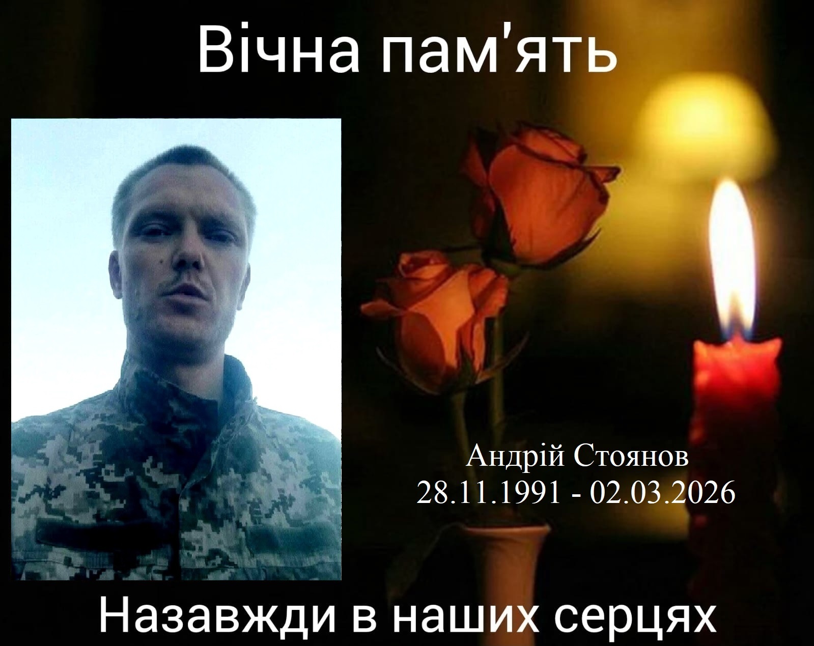 Солдат, гранатометник десантно-штурмового відділення Андрій Стоянов, 1991 року народження. Свій останній бій прийняв 02 березня 2026 року під час виконання бойового завдання поблизу населеного пункту Шевченко Покровського району Донецької області.