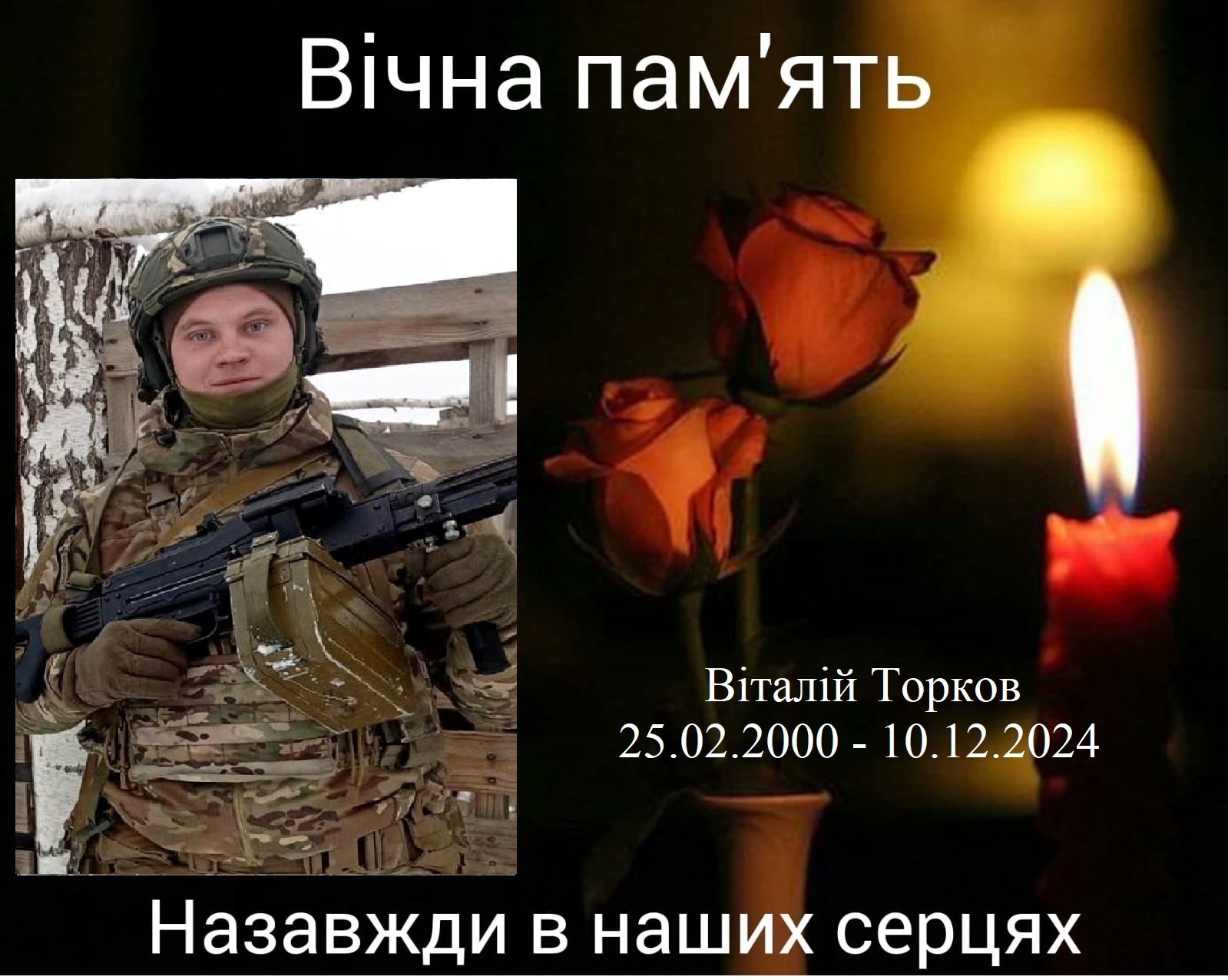 Розвідник-кулеметник, сержант Віталій Торков, 2000 року народження, загинув смертю хоробрих 10 грудня 2024 року, виконуючи бойове завдання в районі населеного пункту Веселий Гай, Покровського району Донецької області.
