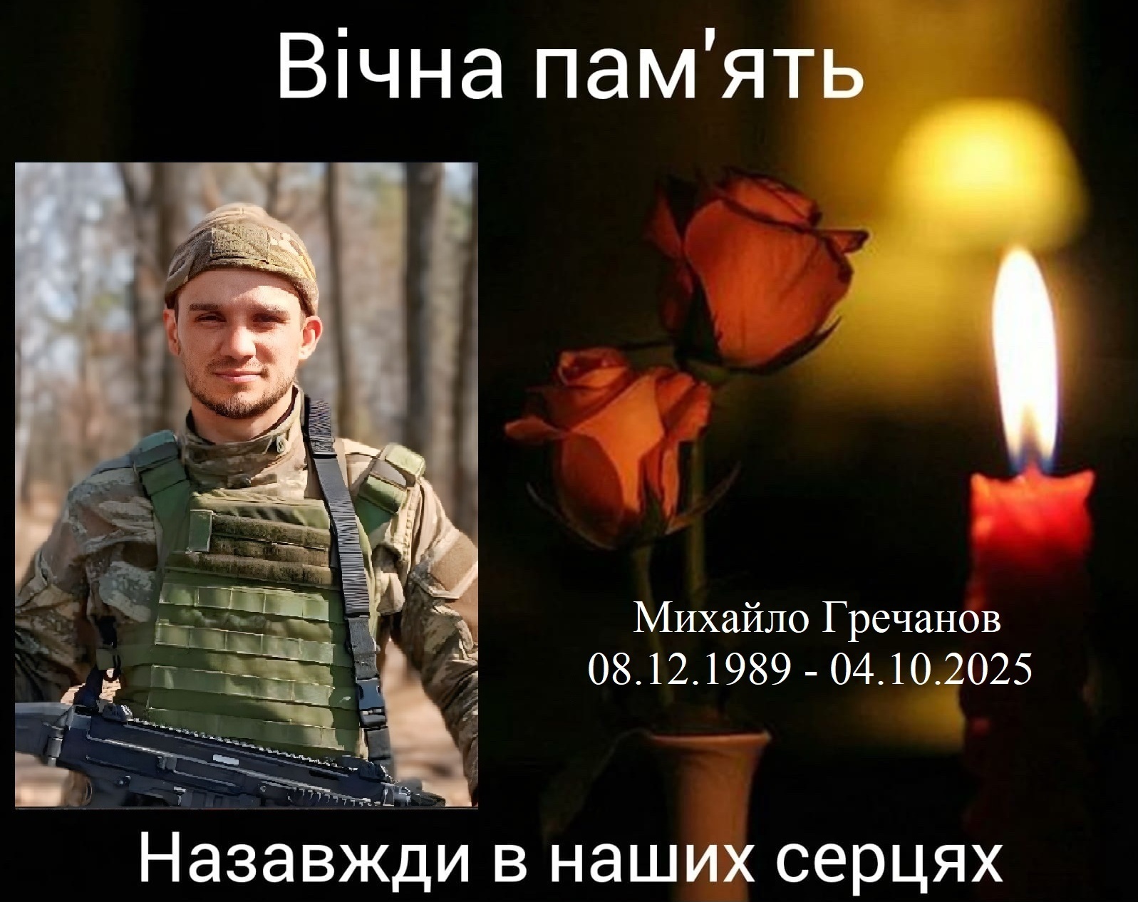 Стрілець, солдат Михайло Гречанов, 1989 року народження прийняв свій останній бій 04 жовтня 2025 року, зупиняючи російських агресорів біля населеного пункту Середнє Донецької області.
