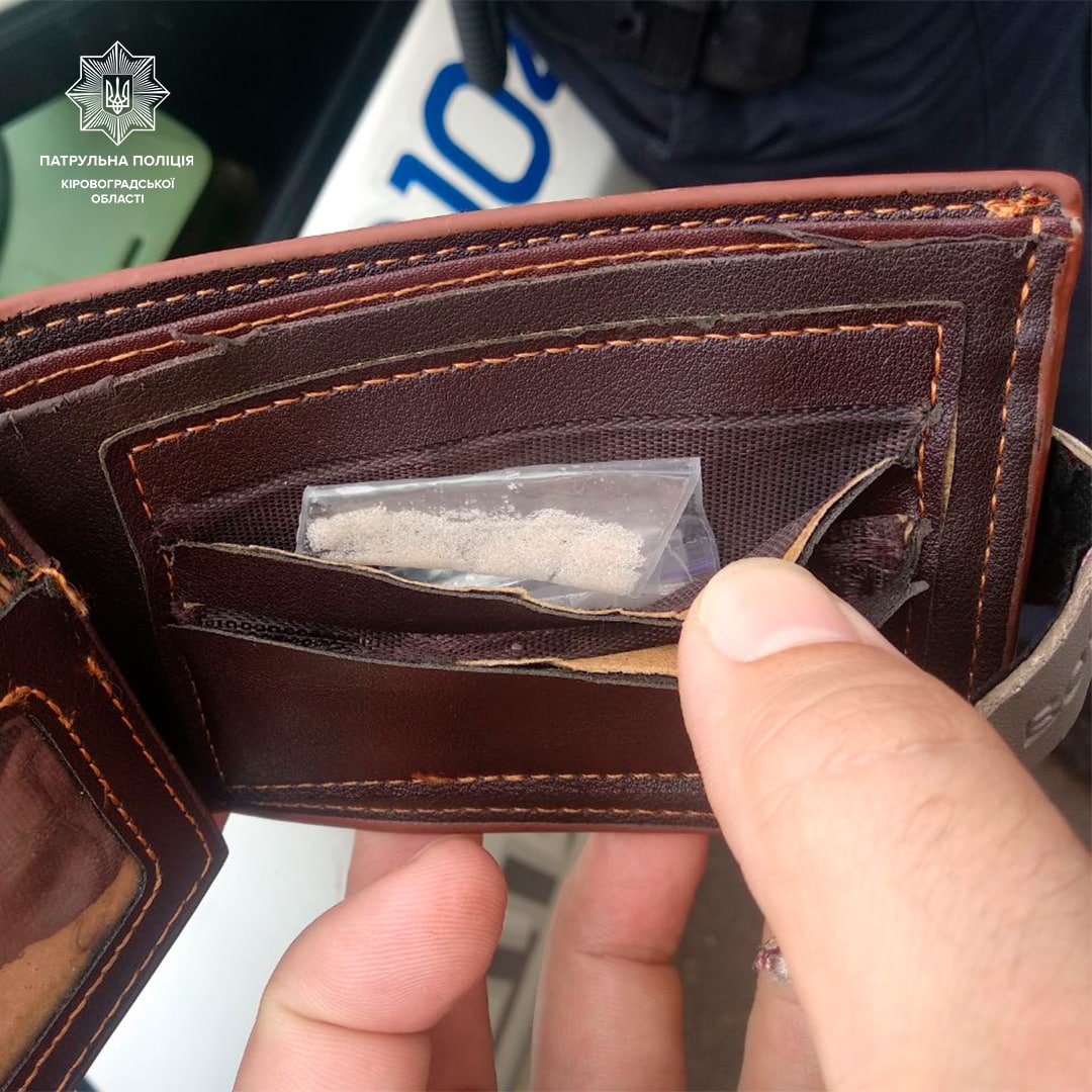 Під час поверхневої перевірки речей пасажира патрульні виявили два пакетики з порошкоподібною речовиною, ймовірно, наркотичною. Чоловік зізнався, що їхній вміст має незаконне походження.