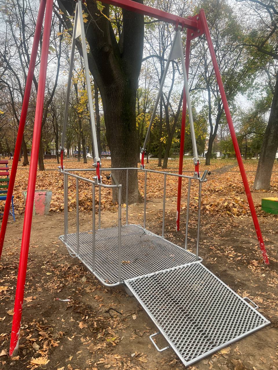 Вона встановлена поряд з iншими iгровими елементами на майданчикув парку «Перемоги» та готова приймати усiх дiток на колісних крiслах.