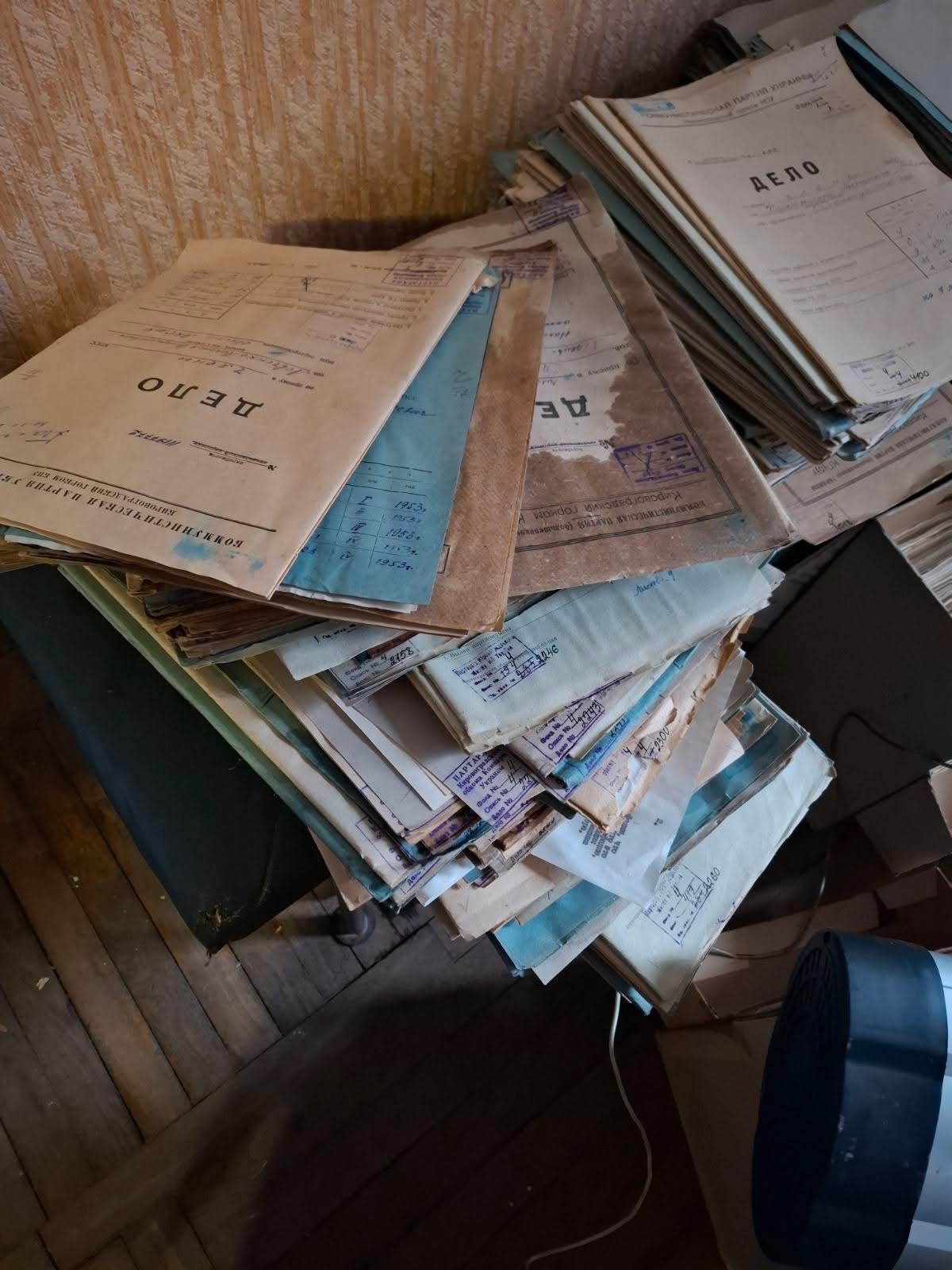 У кімнаті встановлені додаткові обігрівачі, проте через відключення світла забезпечити просушування архівних документів неможливо.