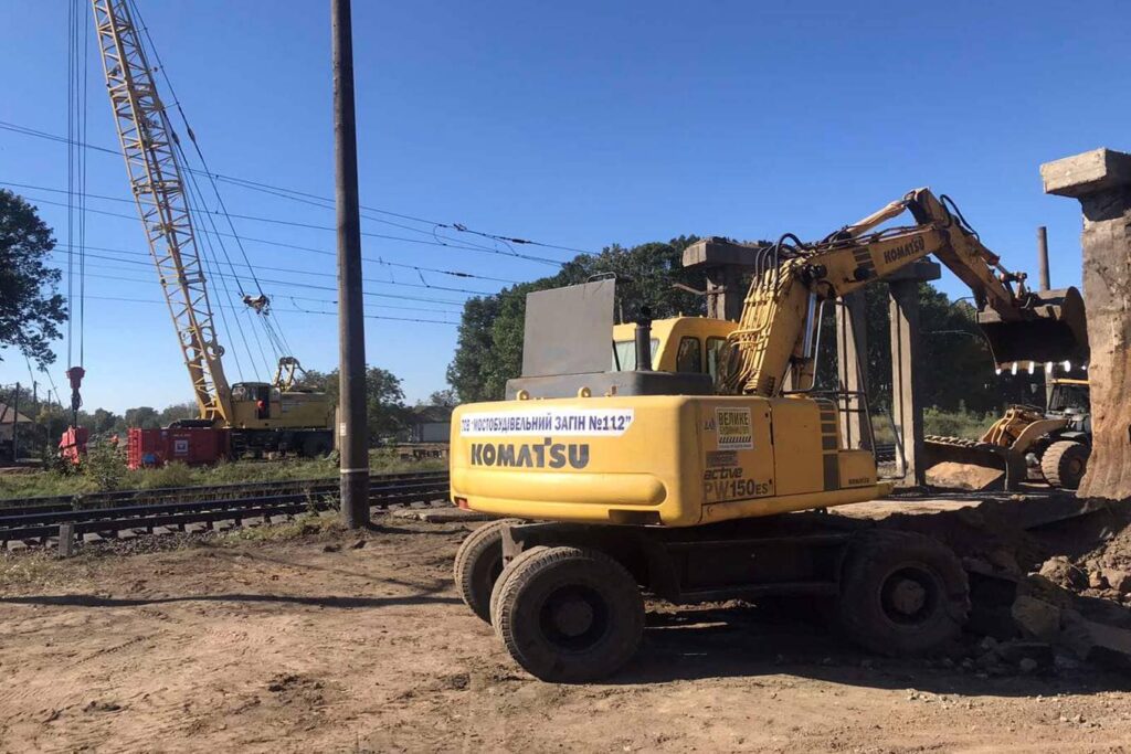 Будівельний майданчик звільняють від демонтованих частин та вибраної землі, аби якнайшвидше розпочати монтаж нових елементів опор.