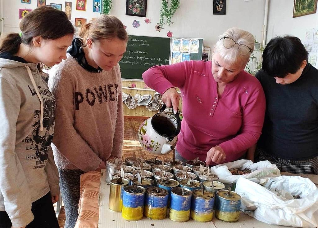 Майстриня Наталiя Панченко та вихованцi закладу покроїли та пошили для воїнiв ЗСУ ремiнно-плечовi системи, вiдомi серед вiйськових як РПС-ки. Вчителька Iрина Ткаченко разом з учнями виготовили окопнi свiчки, за допомогою яких захисники грiються та готують їжу на передовiй. Супи швидкого приготування передала воїнам вчителька Свiтлана Присяжна.