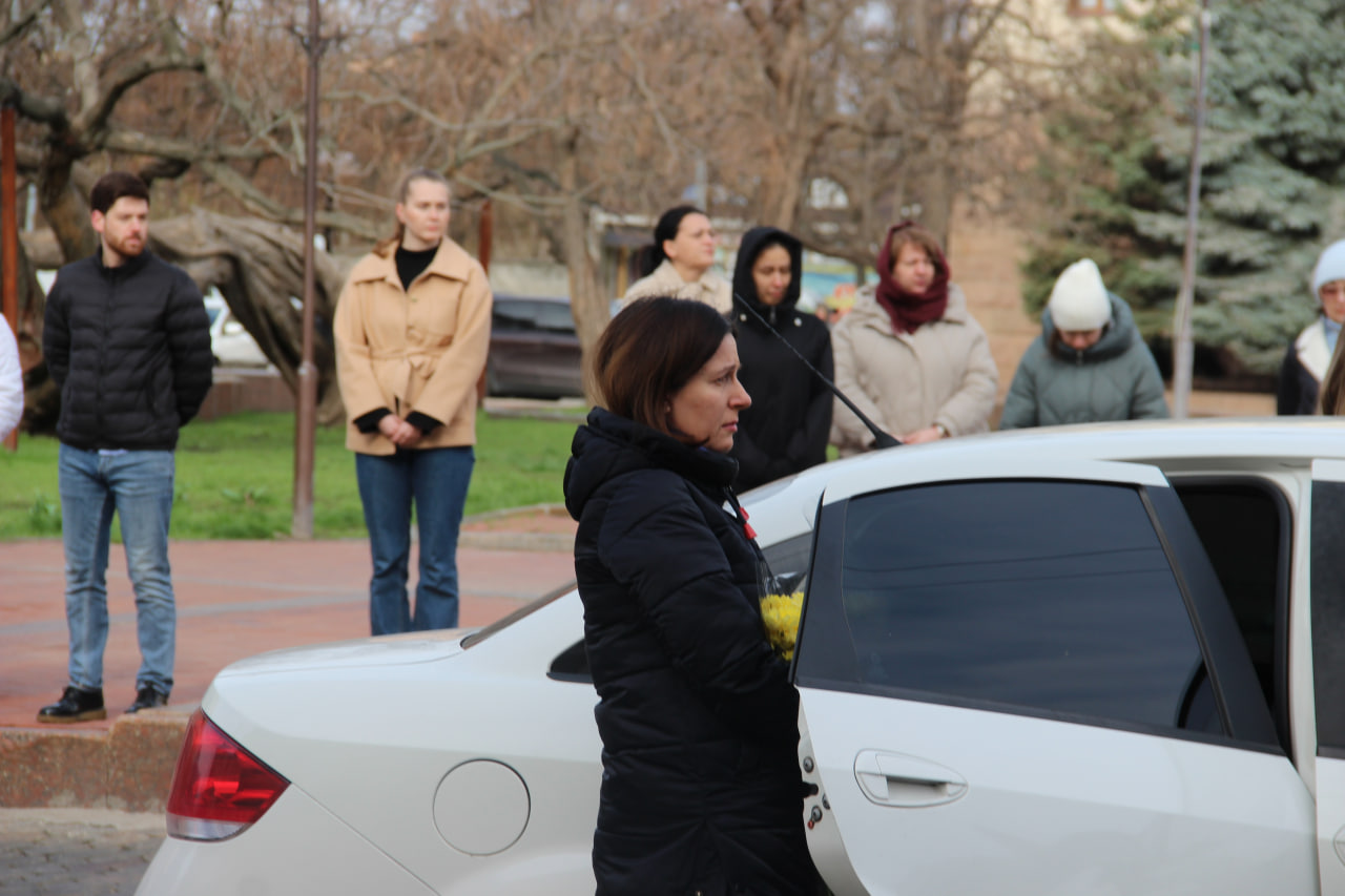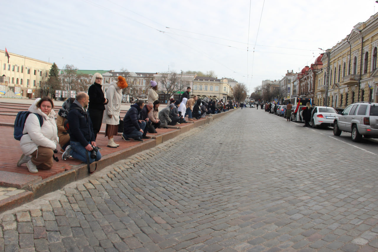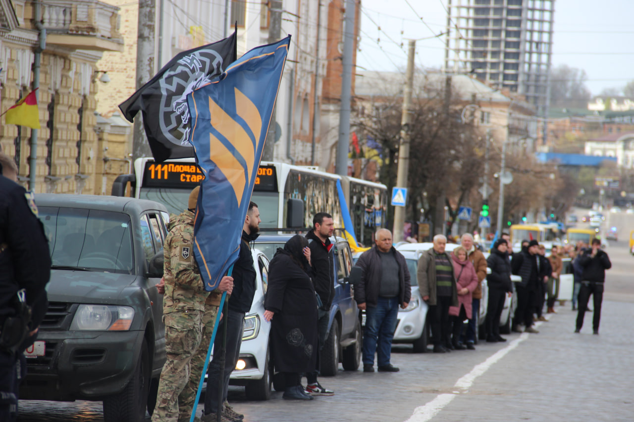 Траурний кортеж зупинився бiля площi i кропивничани, ставши на колiно, вiддали данину пам’ятi 21-рiчному воїну, iнформує Златопiль.