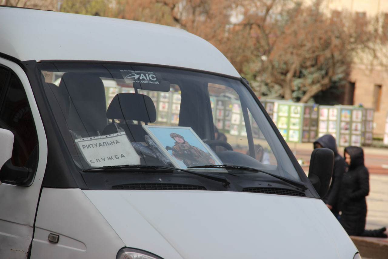 Сьогоднi, 8 квiтня, на площi Героїв Майдану, мiстяни прощалися iз загиблим бiйцем 3-ї окремої штурмової бригади Iллею Мєдвєдєвим.