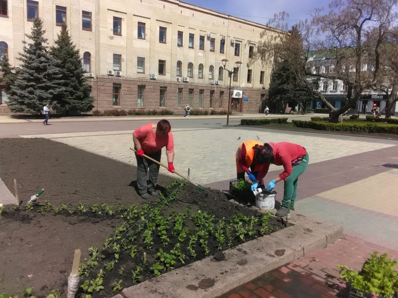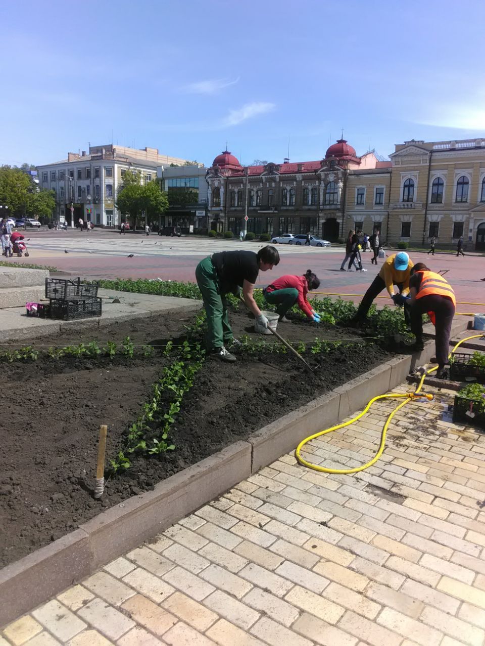 У Кропивницькому на клумбах площi Героїв Майдану працiвники комунального пiдприємства “Благоустрiй” висаджують незвичний квiтник.