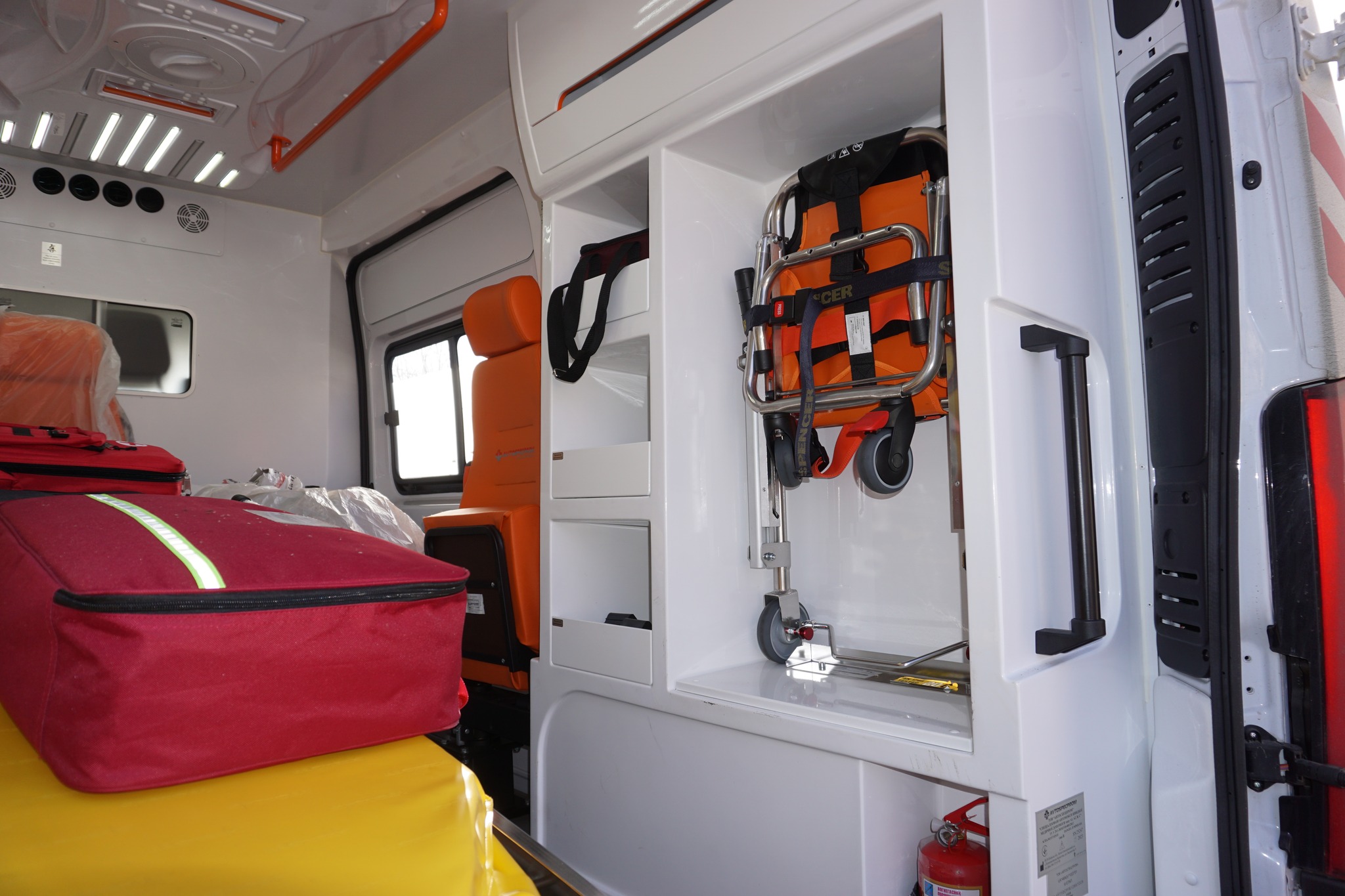 Автiвка оснащена усiм необхiдним обладнанням для надання екстреної медичної допомоги на долiкарняному етапi. У реанiмобiлi передбачено комплекс засобiв, якi забезпечують збереження життєво важливих функцiй пацiєнта пiд час транспортування до медичного закладу.
