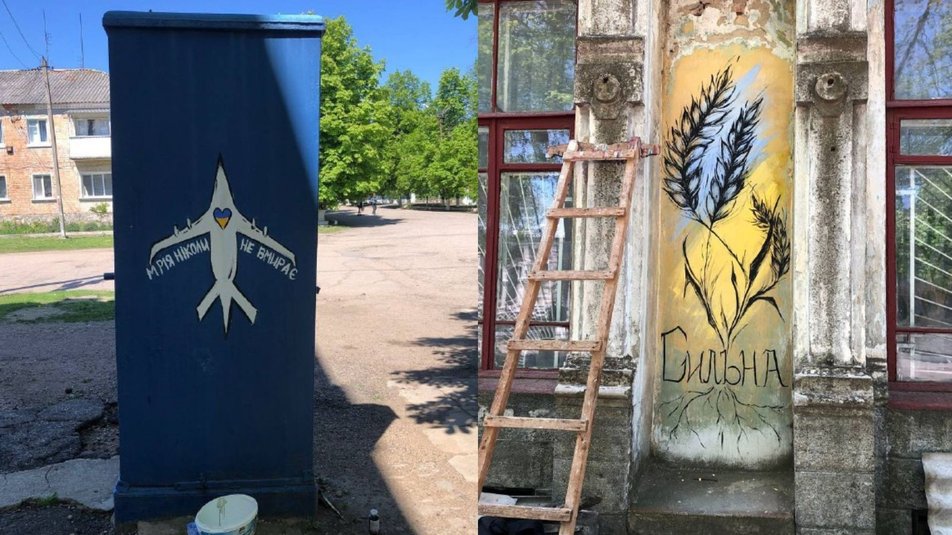 У її рамках за тиждень намалювали сiм патрiотичних малюнкiв на стiнах мiсцевих будiвель.