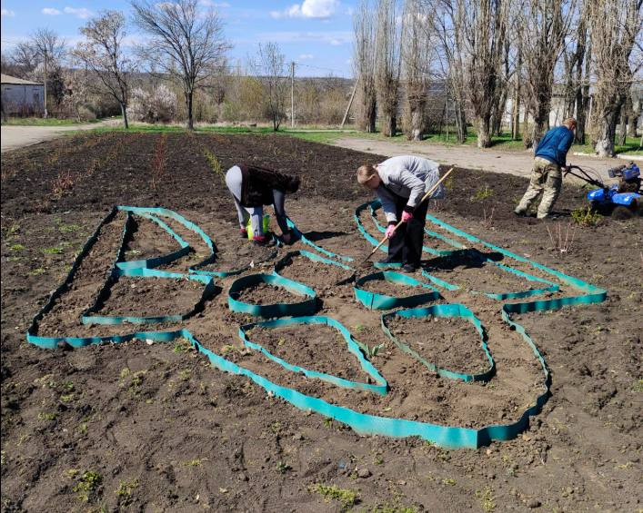 У центрi селища тривають роботи з благоустрою. Силами працiвникiв Устинiвської селищної ради та КП «Комунальник» у створений минулого року контур Герба України висаджено насiння чорнобривцiв сорту «Око тигра».