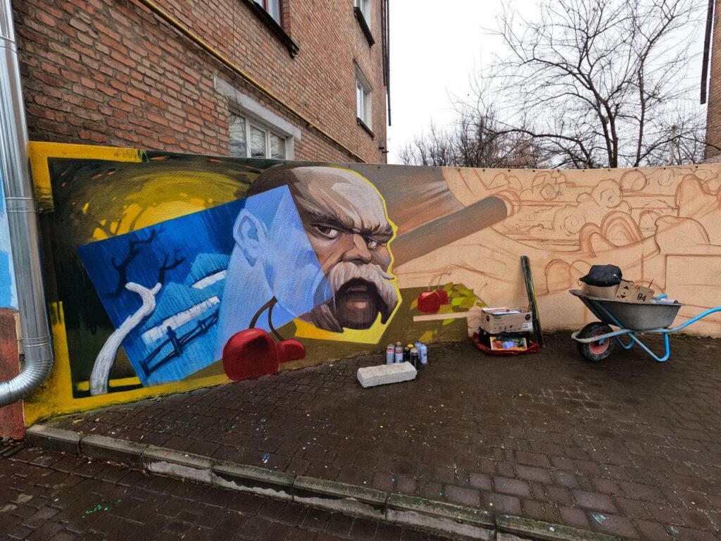 «Цей мурал — втiлення українського духу, що поєднує iсторичну спадщину та сучаснiсть через образ Тараса Шевченка, генiя й пророка нашої нацiї. Центральний елемент роботи — величний портрет Шевченка, виконаний у виразнiй художнiй манерi. Поруч iз ним — червонi вишнi, якi є вiдсилкою до його знаменитих поетичних рядкiв про “садок вишневий коло хати”. На тлi муралу ми бачимо вечiрнiй або нiчний пейзаж, де зображено українськi хати»