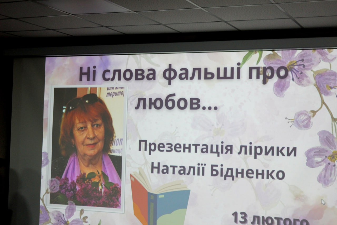 Учора, 13 лютого, в обласній універсальній науковій бібліотеці ім. Д. І. Чижевського відбулася зустріч читачів із членкинею Національної спілки письменників України, авторкою одинадцяти поетичних збірок Наталією Бідненко.