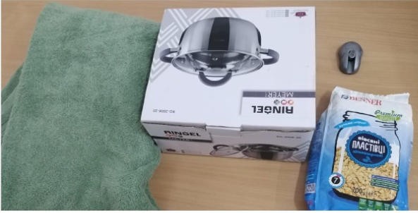 Пiд час огляду речей невiдомого, було виявлено неоплачений товар на загальну суму 1021 грн, який останнiй намагався винести повз касу.