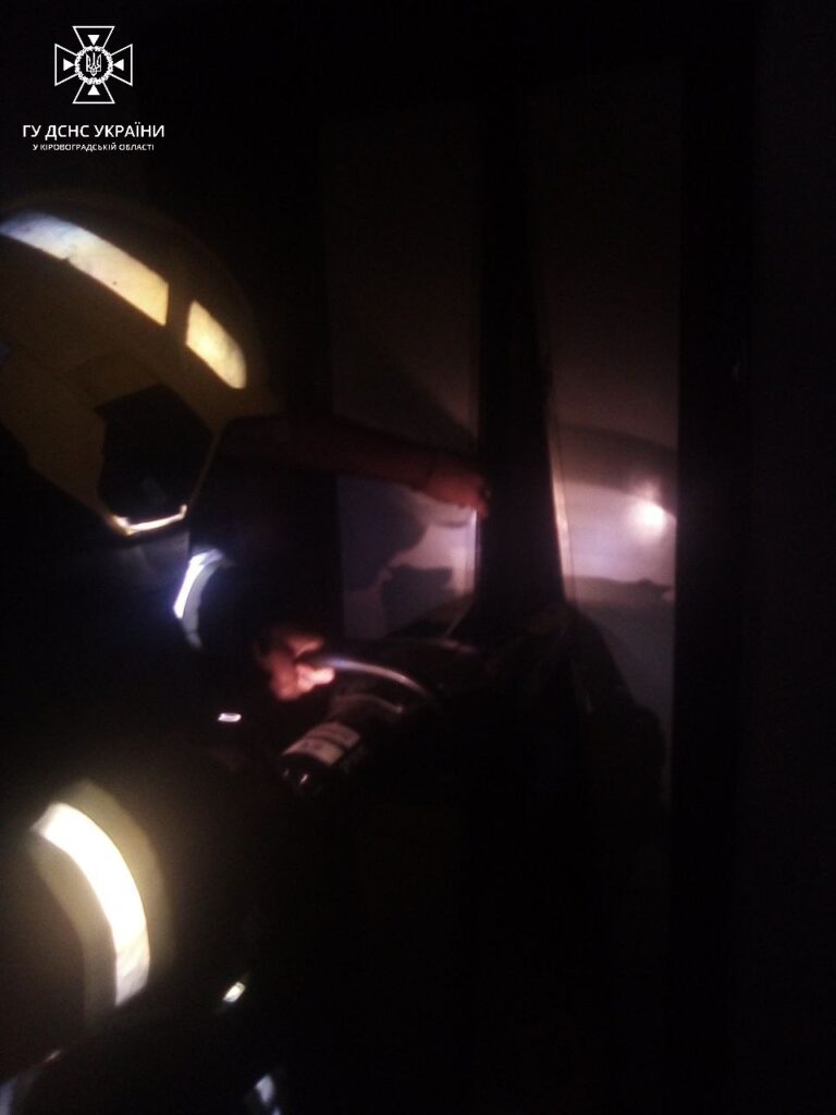 Бiйцi кропивницького пiдроздiлу, якi прибули на мiсце виклику, за допомогою гiдравлiчного iнструменту вiдкрили дверi лiфта та врятували двох жiнок 1974 .р.н та 1996 р.н.