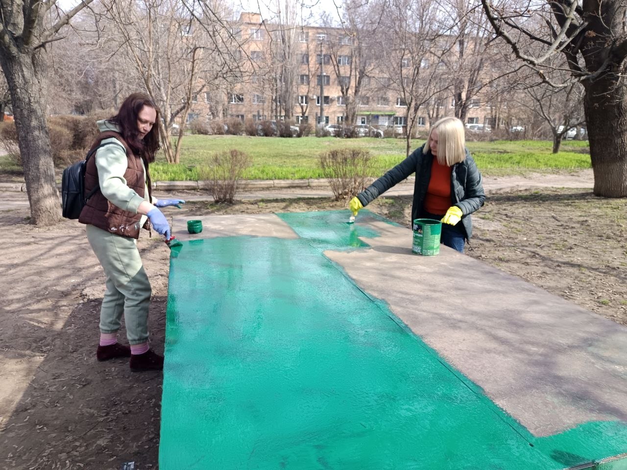 Разом із адміністрацією вони активно працювали фарбували паркани та спортивні знаряддя, турніки, упорядковували клумби та квітники, збирали залишки минулорічного сміття, знищували чагарники та інше.