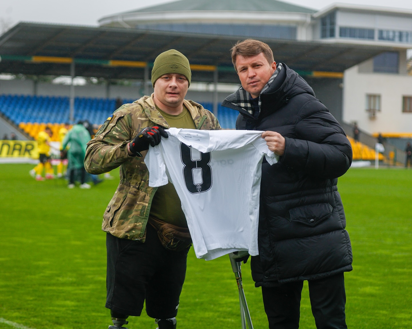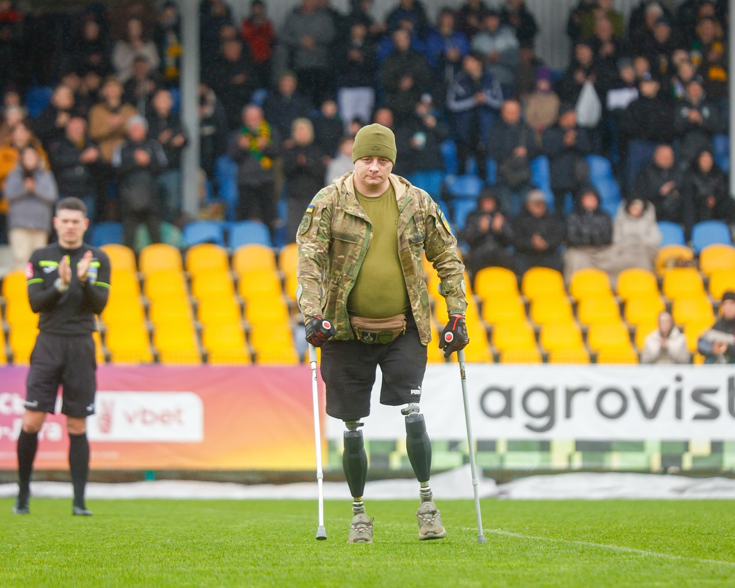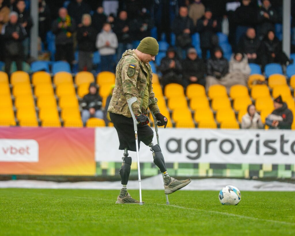 Перший символічний удар по м’ячу у матчі 23 туру УПЛ «Олександрія» – «Кривбас» виконав Володимир Винагородов, старший стрілець 65 окремої механізованої бригади.