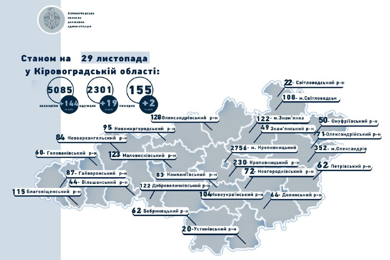 Станом на 29 листопада на Кiровоградщинi на коронавiрус захворiли 144 жителя областi.