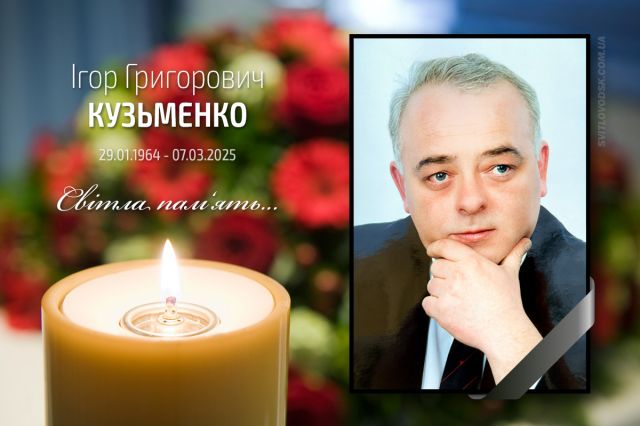 Сьогоднi, 7 березня, на 61-му роцi життя вiдiйшов у вiчнiсть депутат Свiтловодської районної ради двох скликань Iгор Григорович Кузьменко.