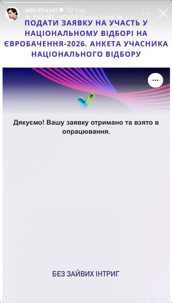 В своєму Instagram Андрій опублікував скріншот, де зображено підтвердження подачі його анкети на участь у Національному відборі. До речі, артист надіслав одразу дві композиції на розгляд журі.