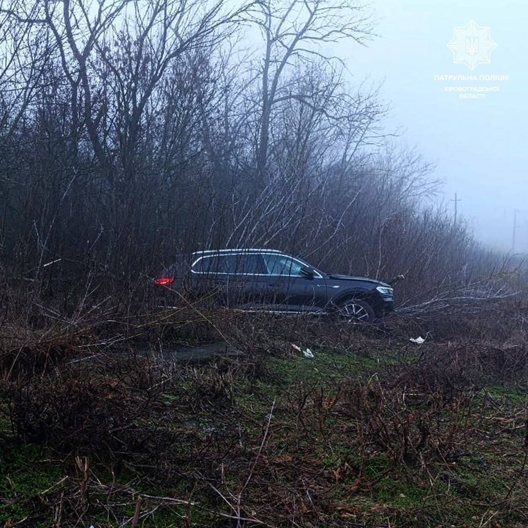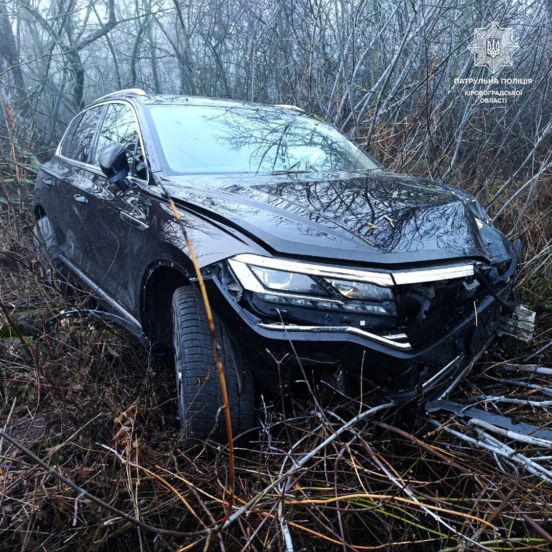 Водiй автомобiля Volkswagen Touareg не вибрав безпечної швидкостi руху, внаслiдок чого виїхав за межi проїзної частини та наїхав на дерево.