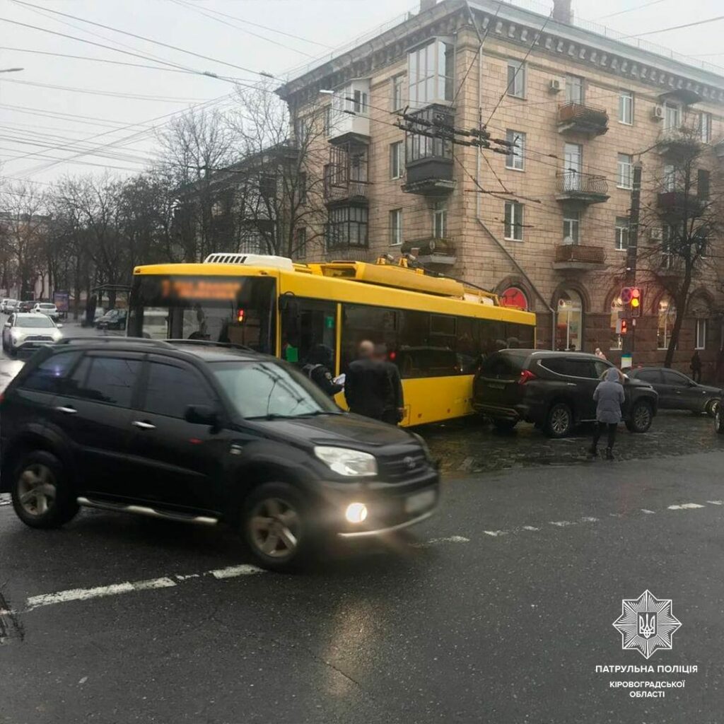 Водiй тролейбуса Днiпро пiд час повороту лiворуч не надав перевагу в русi автомобiлю Mitsubishi Pajero, який рухався у зустрiчному напрямку.