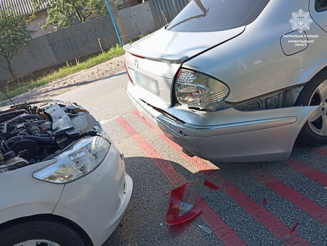 Внаслiдок удару останнiй розпочав некерований рух i скоїв наїзд на автiвку Mercedes-Benz, яка зупинилася попереду.