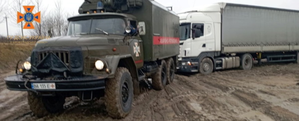 Силами особового складу 18-ої пожежно-рятувальної частини надано допомогу по буксируванню вантажного автомобiля з ускладненої дiлянки автодороги М-12 «Стрий-Тернопiль-Кропивницький-Знам’янка» на територiї Знам’янської територiальної громади.