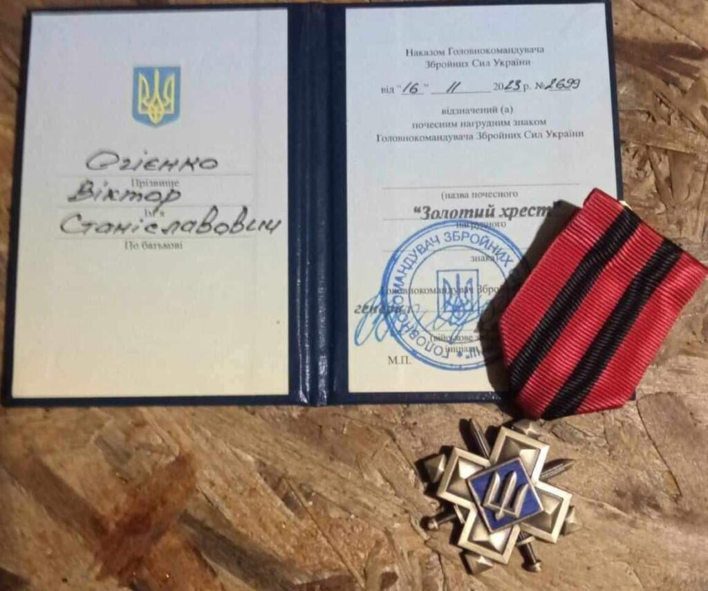 Довідка: “Золотий хрест” отримують військові рядового і сержантського складу Збройних Сил України за проявлену мужність та успішне виконання бойових завдань.