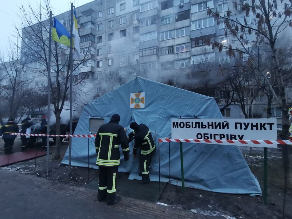 На вулиці Попова, де вчора вибухнув газ, розгорнули польову кухню та мобільний пункт обігріву, чергують рятувальники і поліція.