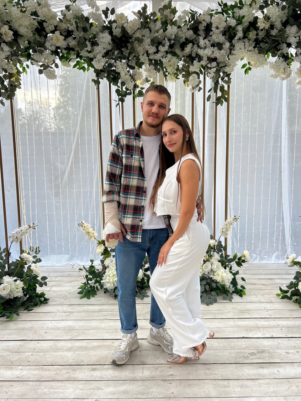 “Планували зробити все гарно, але треба було терміново узаконити відносини для юридичних моментів. Тому за півгодини вирішили, що розпишемося і вже наступного дня зробили це. Батьки звісно були в шоці. Олег навіть постригтися не встиг, каблучку обрали серед тих, які були в мене, а надягати тренувалися в таксі”.