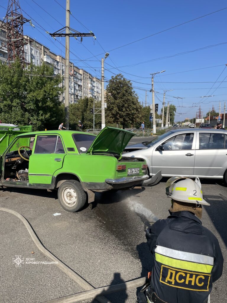 6 вересня о 15:09 до Служби порятунку 101 надiйшло повiдомлення про те, що у м. Кропивницький на перехрестi вулиць Героїв України та Незалежностi сталась ДТП мiж двома легковими автомобiлями.