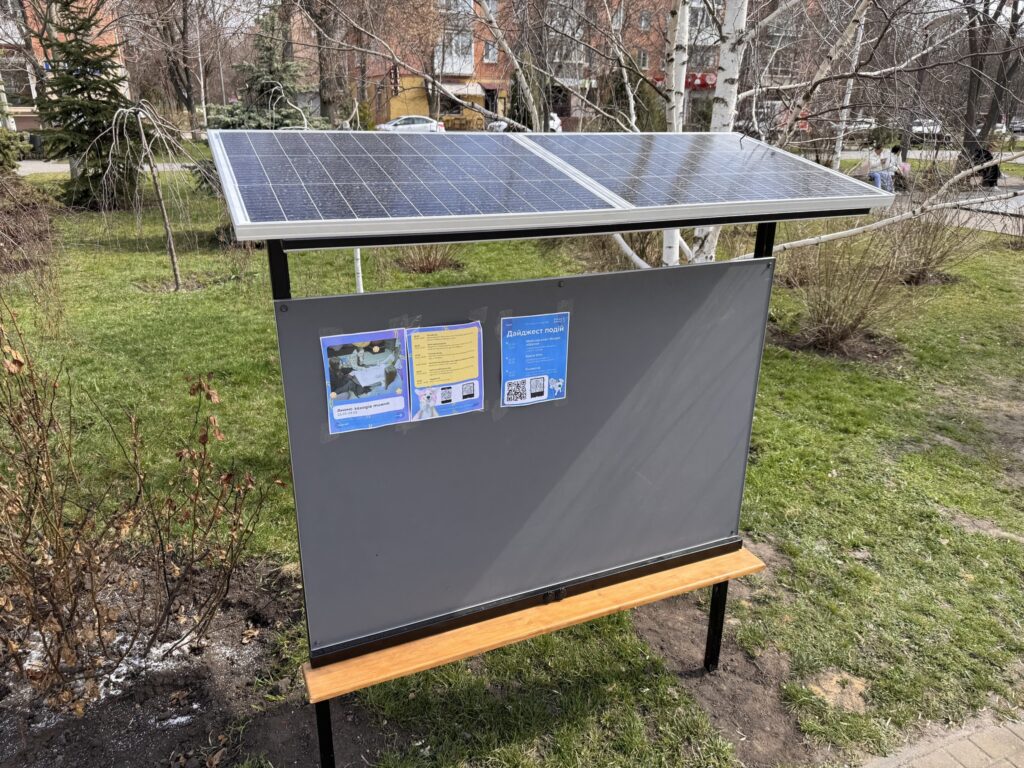 Крiм iнформацiйної функцiї, конструкцiя має й практичне застосування: вона оснащена сонячною панеллю, завдяки якiй у сонячну погоду можна зарядити телефони та iншi гаджети.