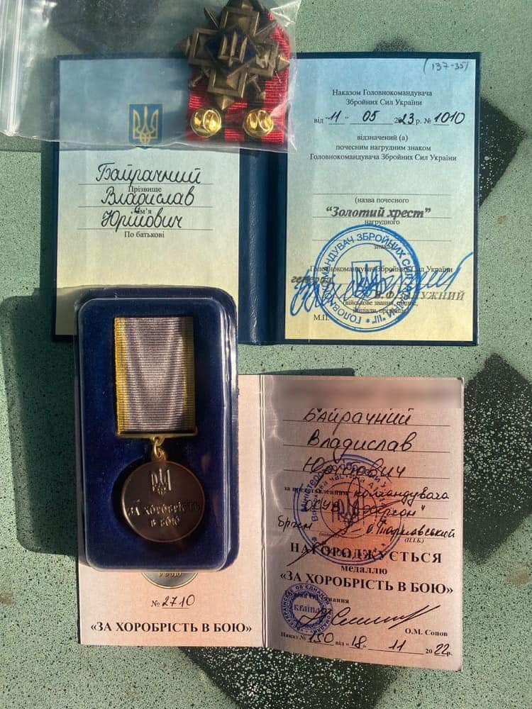 Байрачний Владислав відзначений почесним нагрудним знаком Головнокомандувача Збройних Сил України Валерія Залужного “ЗОЛОТИЙ ХРЕСТ” та медаллю “ЗА ХОРОБРІСТЬ В БОЮ”!