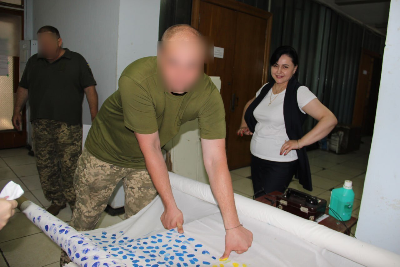 “Тоді представники обласної та мiської влади за донати залишили свої вiдбитки. Потiм упродовж року по рiзним куточкам нашої областi їздили з прапором та збирали кошти на дрони, автiвки. А зараз вирiшили окрiм донатiв патрiотiв робити ще й вiдбитки героїв, якi захищають країну. А також лiкарiв, правоохоронців, рятувальників, освiтян, якi теж наближають перемогу й тримають наш фронт”.