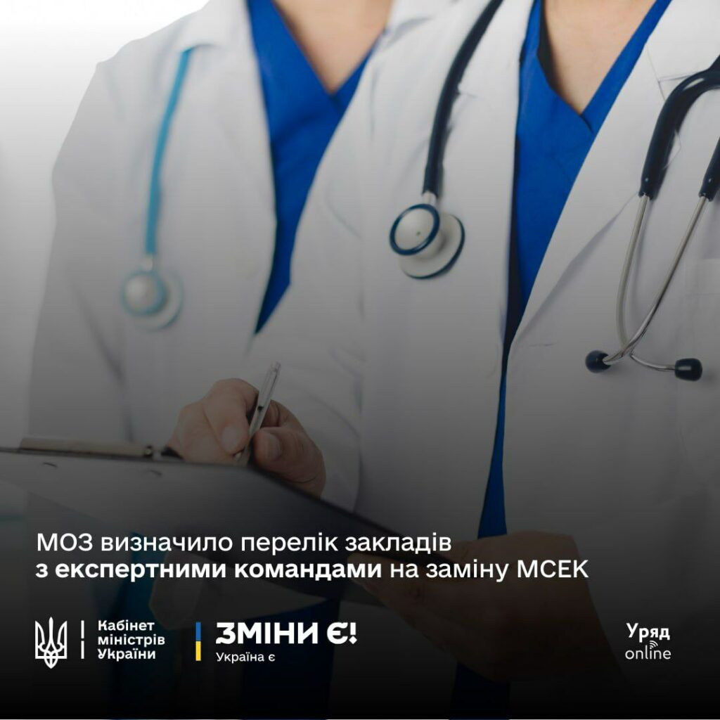 МОЗ визначило перелік закладів з експертними. Експертні команди з оцінювання повсякденного функціонування особи працюватимуть у 286 лікарнях по всій Україні, повідомляють у Кіровоградській ОВА.