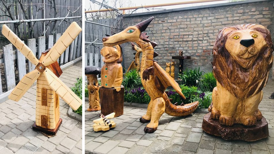 Метрових казкових героїв з дерева виготовляє майстер з Кропивницького Олександр Пахучий.